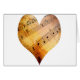 Quelle belle façon de montrer votre appréciation pour la musique. Une forme de coeur avec de vieilles partitions à l'intérieur. L'or et le papier jaune paraissent vieux et classiques.
