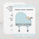 Invitations baby showers créatifs mettant en vedette le piano à queue bleu bébé comme poussette pour les futures mamans musicales.