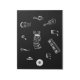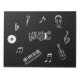 Un bloc-notes à thème musical. Graphiques à thème de musique blanche, sur une couverture noire, centrés autour du mot musique.