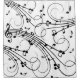 Design blanc avec barres de musique bouclées et notes de quartier dansantes