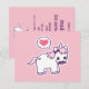Super mignonne licorne rose et violet avec moustache et coeur d'amour. Personnalisez le dos avec vos informations de fête.