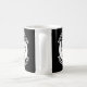 My Face on a custom Mug, 11 oz., 3.2" diameter x 3.8" high, with BLACK background and COLLEGE text font. (A combo mug has black, hunter green, maroon, navy blue or yellow handle + inside). Custom photo and personalized text template with two individually customized design areas (see store for more background colors, font styles, and alternative template options).
