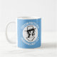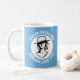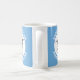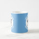 My Face on a custom Mug, 11 oz., 3.2" diameter x 3.8" high, with MACHESTER CITY BLUE (Powder Blue) #6CADDF background and COLLEGE text font. (A combo mug has black, hunter green, maroon, navy blue or yellow handle + inside). Custom photo and personalized text template with two individually customized design areas (see store for more background colors, font styles, and alternative template options).