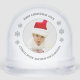Personalize this modern and elegant 'My First Christmas' snow globe with your baby's photo, name, and the year of birth. Snowflakes accent your baby's photo. Photo template via Pixabay licensed under CC0 and must be replaced with your own photo