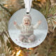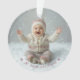 Cute Christmas keepsake ornament featuring the words "My First Christmas" between snowflakes and your favorite photo of your precious newborn (on the front) and beautiful typography (on the back) which reads "Unto Us a Child is Born". Tip: Change the pink text and background colors to match your photo.