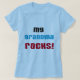 My Grandma Rocks T-shirts, cartes, autocollants, sacs fourre-tout, magnets, boutons et autres articles avec un design de texte noir, bleu et rouge. Ces objets My Grandma Rocks sont une excellente façon de montrer votre amour pour votre grand-mère spéciale!