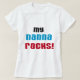 My Nanna Rocks T-shirts, cartes, autocollants, sacs fourre-tout, magnets, boutons et autres articles avec un design de texte noir, bleu et rouge. Ces produits My Nanna Rocks sont une excellente façon de montrer votre amour pour votre nanna spéciale!