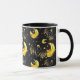 Embrace the magic with this mystical mug featuring a captivating design of golden moons and bats against a sleek black ceramic backdrop. Perfect for coffee, tea, or hot cocoa, this 11 oz combo mug combines style and durability with a comfortable handle.