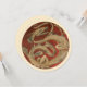 Illustration vintage d'une créature mythologique avec un dragon japonais ou chinois doré art nouveau dans un cercle rouge. En Asie, le dragon peut être un symbole de chance ou de bonne fortune. Ressemble à un serpent marin avec des nageoires ou un lézard animal reptile.