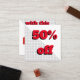 Une carte carré avec un design audacieux, 50% de réduction ou n'importe quel nombre fonctionne pour vous, tout le texte est entièrement modifiable pour vos propres informations.La moitié de la conception de la carte convient à une réduction de 50%, mais fonctionne finalement avec n'importe quoi.