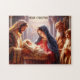 Puzzle représentant une peinture du bébé Jésus-Christ avec ses parents et les hommes sages. Un joli puzzle de Noël !
