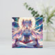 Ethereal rose and blue anime fille méditant sous la pleine lune.