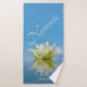 Cette serviette présente un design magnifique et paisible avec une fleur de lotus jaune et blanc qui se reflète sur un arrière - plan bleu ciel. Il y a de l'espace en bas pour votre nom. Parfait pour la salle de gym ou le cours de yoga.