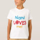 Nani Loves Me T-shirts, cartes, autocollants, sacs de carrosserie, et plus avec coloré rouge, jaune, et bleu texte et conception du coeur. Ces cadeaux Nani feront sourire nani !