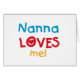 Nanna Loves Me T-shirts, cartes, autocollants, sacs de carrosserie, et plus avec coloré rouge, jaune, et bleu texte et conception du coeur. Ces vêtements et cadeaux Nanna Love me feront sourire nanna!