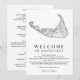 Accueillez vos invités à votre mariage à Nantucket avec cette élégante carte d'événements de week-end noir et blanc, mettant en vedette une carte intemporelle de l'île de Nantucket. Le recto comprend un message de bienvenue chaleureux, tandis que le verso décrit l'itinéraire de votre week-end de mariage. Parfait pour les célébrations au Wauwinet, White Elephant, Nantucket Hotel, Galley Beach et Great Harbor Yacht Club, cette carte tient les invités informés avec style. Œuvre d'art de Coastal Map Designs.