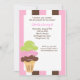 Commencez votre fête tout de suite avec cette adorable invitation à la crème glacée sucrée. Qu'il s'agisse d'une soirée à la crème glacée ou d'une soirée à la crème glacée, c'est celle qui vous convient. Elle est posée sur un arrière - plan rayé rose, blanc et marron épais avec un carré blanc au centre. Il y a un cône glacé à triple scoop en bas à gauche de l'invitation. Il a un scoop vert citron, rose et un scoop marron. Découvrez les nombreux autres produits et designs de cette ligne. © riefka