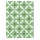This graphic art illustration has a four part repeat pattern with fun freeform whimsical art elements to it. Greenish black chalk crayon rough crackled lines highlight the translucent watercolor painting style of the green flowers and leaves throughout.