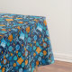 Nappe avec beau motif, fournitures à coudre - ciseaux, boutons, bobines de fil, aiguilles - dispersés sur un arrière - plan bleu foncé. Cette conception, élaborée à partir d'un collage en papier fait main, fait un grand cadeau pour les artisans et les égouts. © Julia Khoroshikh www.juliakhoroshikh.art #tableDécor #cuisentextiles #nappes #tissus #homéhobbies #haberdashery