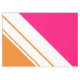Ce design sportif et coloré présente des rayures blanches en diagonale contre des arrière - plans orange vif et roses.