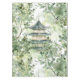 Cette nappe est composée d'une pagode de style asiatique traditionnelle, rendue par de délicates touches d'aquarelle, au milieu d'un paysage verdoyant. Le design s'inspire de l'élégance architecturale que l'on retrouve au Japon, en Chine, en Corée et au Vietnam, et qui rend la sérénité de la nature mêlée au patrimoine culturel. Le mélange harmonieux de teintes verdoyantes et de détails complexes évoque un sentiment de tranquillité et d'intemporalité, ce qui en fait une pièce polyvalente pour diverses applications artistiques.