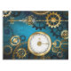 arrière - plan turquoise, texturé, steampunk avec laiton et or, clé en argent et horloge. Style Steampunk.