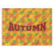 Cette bannière sonne l'automne avec des couleurs d'or et de marron. Plusieurs feuilles entourent la bannière. Un arrière-plan de couleurs d'automne en or, rouille et jaune a été ajouté à cette conception. Également disponible dans un design carrelé. Disponible dans des styles assortis. Cette nappe est disponible en 3 tailles différentes. Grand ajout à votre décor d'automne.