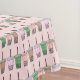 La nappe illustre une rangée de tasses de thé taiwanais boba (bulle) aux couleurs pastel.