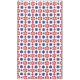 This tablecloth features a beautiful colorful floral pattern of blue, purple and red stylized daisies against a white background; perfect for adding a touch of retro cuteness to your dining room or kitchen.