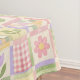 Infuse your table with sweet, rustic charm. This elegant tablecloth features a pink and green floral patchwork pattern with quilt-style detailing, blending girly boho aesthetics with trendy, vintage chic for a cute and stylish spring or summer gathering.