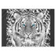 A bold blue eyes wild Tiger face Portrait in black and white Style design.