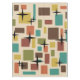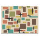 Un design d'art abstrait simple des années 1950 avec des carrés arrondis et des rectangles dans un motif multicolore déchiqueté.