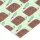 La nappe présente une illustration originale d'une délicieuse tranche de gâteau de Noël britannique, surmontée de feuilles saints et de baies.