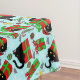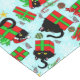 Chats noirs mignons dans ou autour rouge et vert cadeaux de Noël avec des flocons de neige sur fond bleu clair