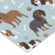 Cute Cavalier King Charles Spaniel avec des manteaux noirs, bruns et blancs avec des os de chien éparpillés et des motif de pawprints.