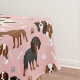 Cute Cavalier King Charles Spaniel avec des manteaux noirs, bruns et blancs avec des os de chien éparpillés et des motif de pawprints.