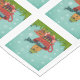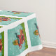 Une nappe avec un motif d'un adorable chat orange assis dans une tasse. Portant un casquette et une écharpe d'hiver. Les flocons de neige tombent contre un arrière - plan vert clair.