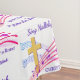Christian HALLELUJAH CHRIST IS RISEN Easter Tablecloth, showing a gold colored empty cross in amongst colorful music staves and repeated in an all-over tiled pattern. The Easter text appears in a mauve color. These words will be sung by Christians the world over to celebrate the resurrection of our Lord Jesus Christ at Calvary. This modern Christian Easter Tablecloth would make a great addition to your tableware when hosting dinners to celebrate Resurrection Sunday. Choose from a wide selection of faith-based Christian Easter designs on cards, invitations, home decor, clothing and gifts, designed by Berean Designs. Card versions of this Easter design are listed separately. Matching gifts available.