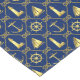Cette nappe dorée et bleu marine classique est idéale pour la décoration de maison côtière ou pour votre prochain événement de fête, comme mariage, fête d'anniversaire, réveil de plage, baby shower ou fête de retraite. Des éléments nautiques dorés et une corde dorée avec des noeuds nautiques forment un élégant motif nautique classique qui se distingue par son arrière - plan bleu foncé.