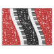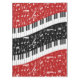 Clés de piano incurvées par contemporain et notes musicales blanches avec contraster les panneaux rouges et noirs