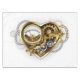 Coeur steampunk mécanique, volumétrique, avec manomètre, acier et or sur arrière - plan blanc. Style Steampunk.