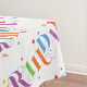 Dites un disent tous, il est un amusement de partie oui pour tous. Nappe blanche de tissu, partout joyeux anniversaire multicolore imprimé. Grande utilisation pour le nettoyage facile après toutes parties.