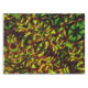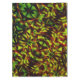 Dessin rappelant les rubans entrelacés dans un vert légèrement jaunâtre et un brun rougeâtre taché qui rappelle quelque chose brûlé. L'image a subi un effet "sculpté" qui a causé un assombrissement de la couleur et une certaine perception de la luminosité dans certaines parties et de petites taches ridées dans d'autres.