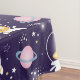 Une nappe avec un motif adorable où flottent dans l'espace des astronautes de chats nus. Amusant et capricieux.