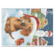 Ce design festif reflète l'esprit joyeux de la période des fêtes, avec un adorable petit portant un chapeau de Père Noël. Le chien est niché dans un pays des merveilles hivernales, avec un bonhomme de neige, un sapin de Noël décoré et des cadeaux joliment emballés. Les flocons de neige tombent doucement, ajoutant une touche magique à la scène, tandis que les couleurs vives des décorations de vacances créent une atmosphère chaleureuse et joyeuse.
