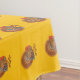 Cette nappe est d'une couleur jaune doré avec des dindons de Thanksgiving mâles aux plumes de la queue en éventail marron et orange debout dans des feuilles d'automne.