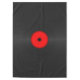 Un graphique vintage de disque vinyle avec le centre rouge d'étiquette.