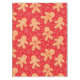 C'est mignon Gingerbread homme cookies motif dans différentes expressions amusantes avec de petits flocons de neige sur un arrière - plan rouge vif. C'est une belle nappe pour vos fêtes de Noël