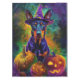 Embrassez l'esprit d'Halloween avec ce design enchanteur avec un chien mignon dans un casquette sorcier entouré de citrouilles sculptés. Parfait pour ajouter une touche de charme éffrayant à vos célébrations festives.
