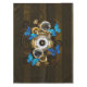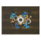 Composition de l'horloge ronde steampunk avec cadran romain noir, décoré avec des engrenages or et laiton, papillons Morpho bleu et lentilles endommagées sur arrière - plan rayé brun. Style Steampunk.